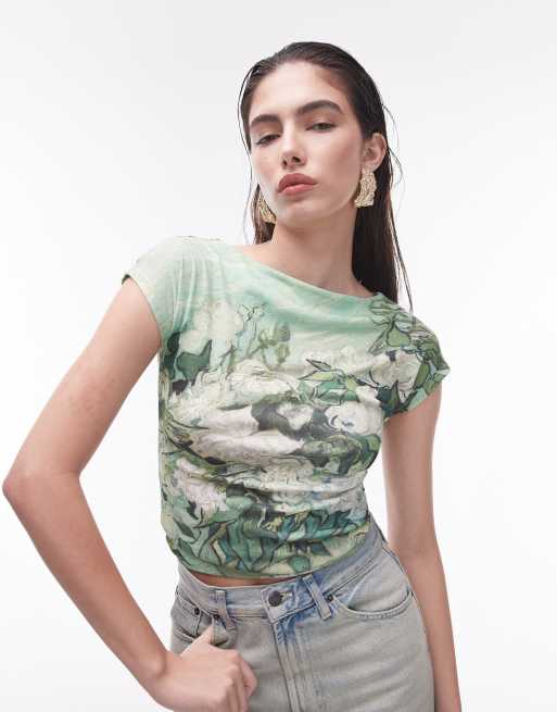 Topshop – Art Museum – T-shirt med blommigt tryck, holkärmar och Van Gogh-tryck