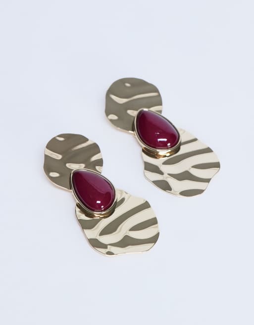 Topshop – Bailey – Guldfärgade örhängen i statementstil med vinröda stenar