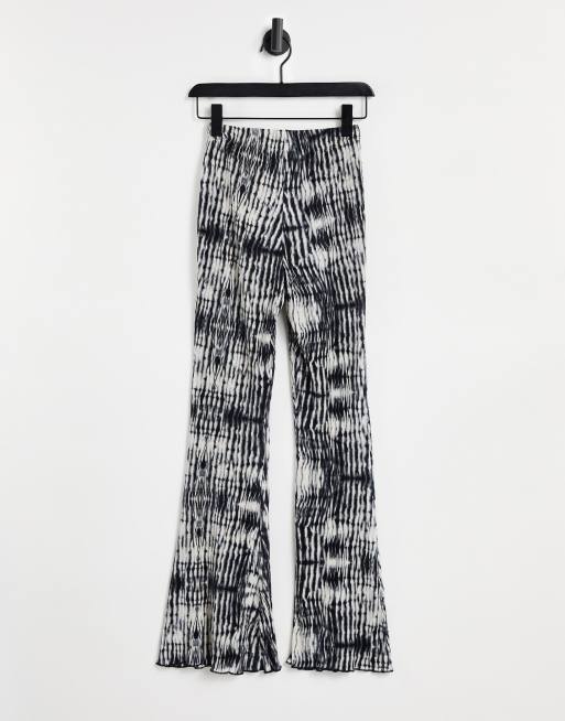 Topshop – Batikfärgade plisserade byxor med utsvängda ben