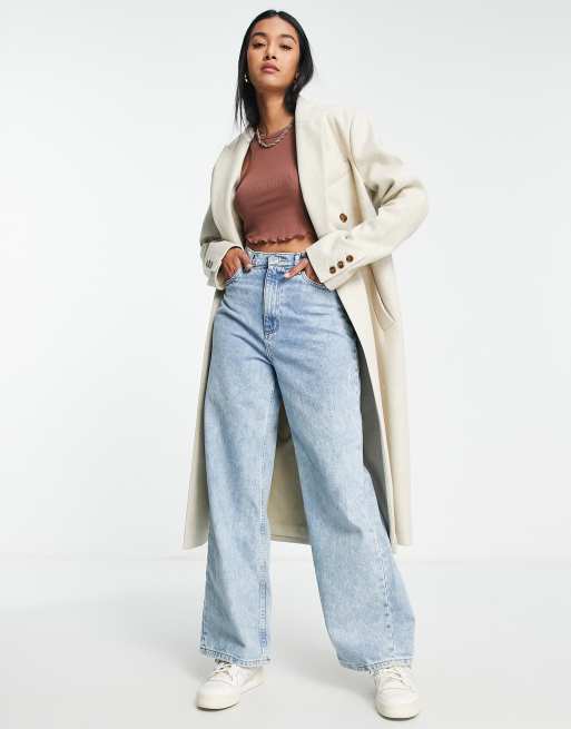 Topshop – Beige dubbelknäppt kappa i lång modell