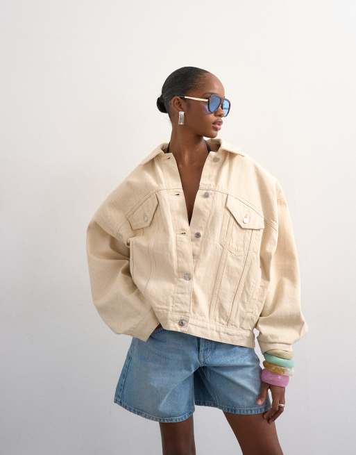 Topshop – Beige jeansjacka med ballongärmar