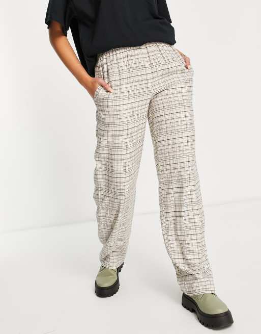 Topshop – Beige rutiga byxor i dra på-modell med raka ben, del av set