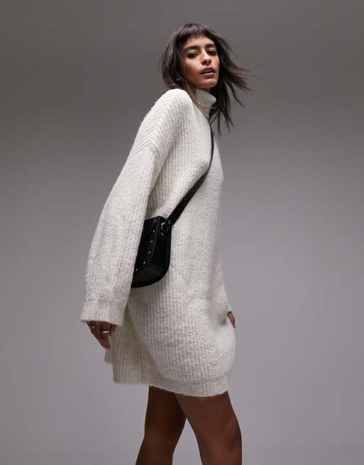 Topshop – Benvit, stickad miniklänning med polokrage