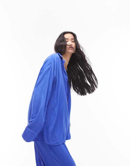 Topshop – Blå krinklad strandskjorta, del av set