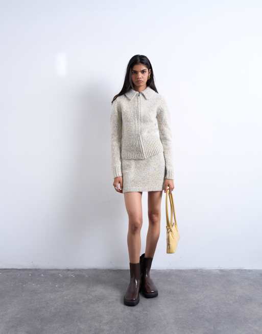 Topshop – Blå och gul, stickad kjol av vridet garn, del av set
