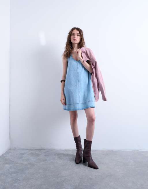 Den här klänningen är tillverkad av blekblå, tvättad denim utan stretch. Den ärmlösa designen har en rund halsringning, dekorativa sömmar och vid passform.Produktkod: 149436097