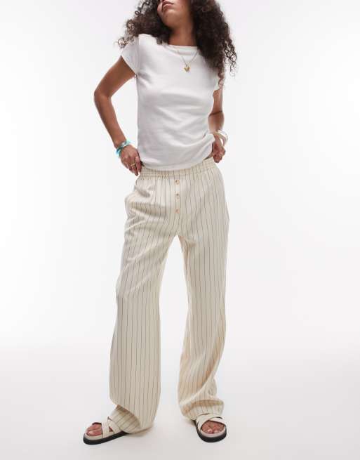 Topshop – Bobbi – Beige mjukisbyxor i boxershortsdesign med kritstrecksränder