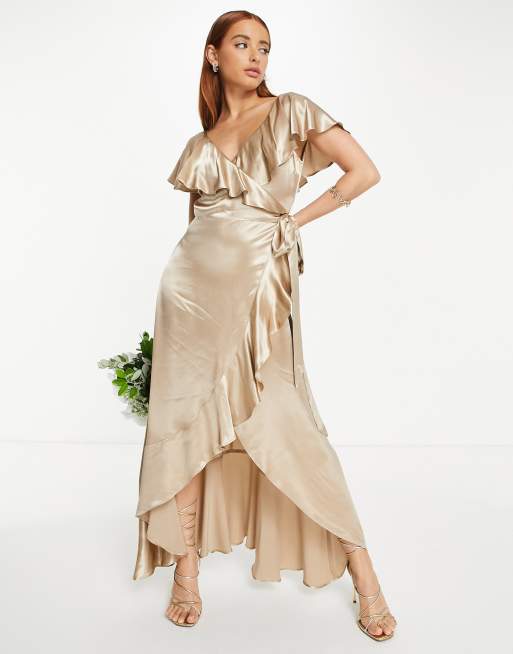 Topshop – Brudtärnor – Guldfärgad omlottklänning i satin med volang