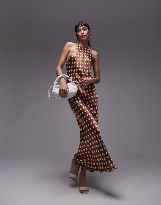 Topshop – Brun, prickig maxiklänning med halterneck