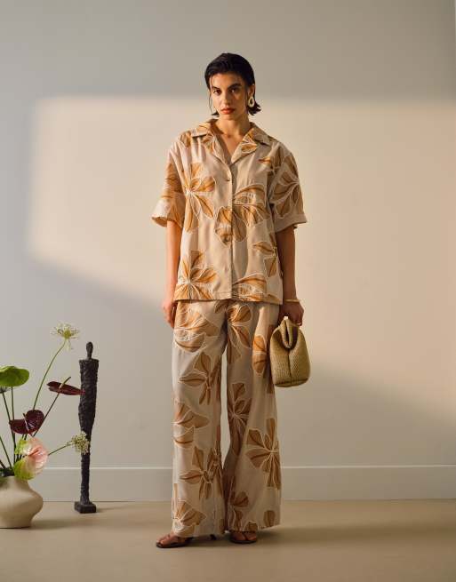 Topshop – Bruna, blommiga byxor i linnetyg med låg midja och blommigt mönster, del av set