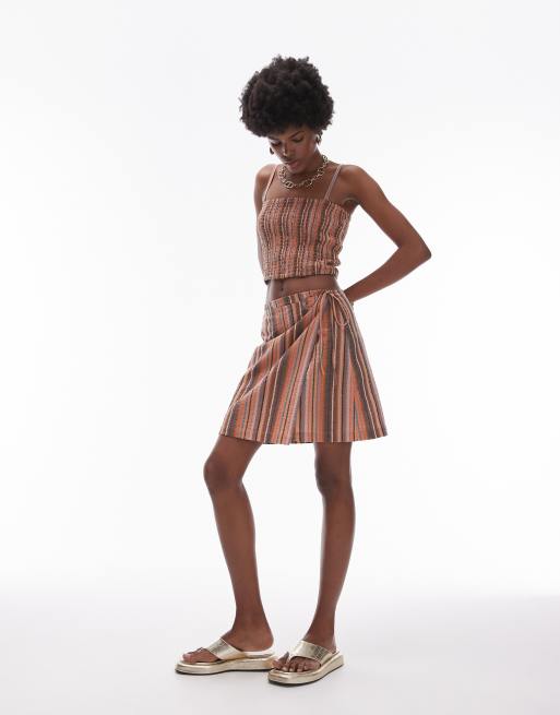 Topshop – Brunrandig, texturerad strandkjol med omlottdesign