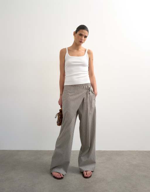 Topshop – Brunrandiga byxor i poplin med omlottkjol