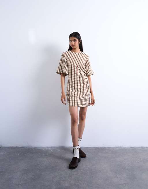 Topshop – Brunrutig t-shirtklänning i bäckebölja och minilängd
