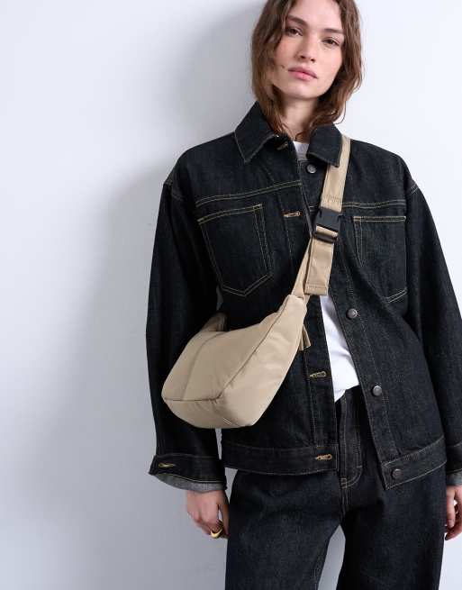 Topshop – Carrie – Kamelbrun axelremsväska i nylon
