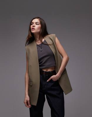 Topshop – Chuck On - Brun, ärmlös kavaj, del av set