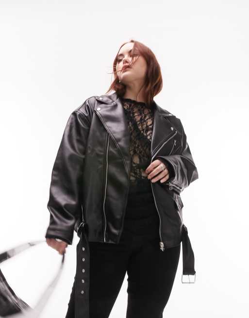 Topshop Curve – Svart bikerjacka i oversize av läderimitation