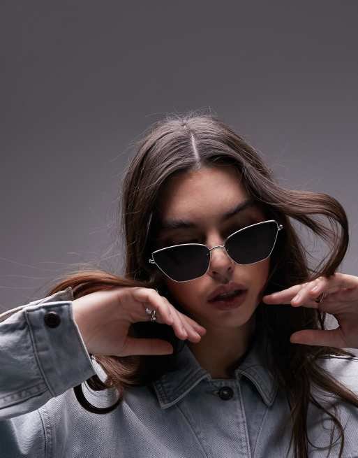 Topshop – Daisy – Silverfärgade solglasögon i cateye-modell med metallbåge