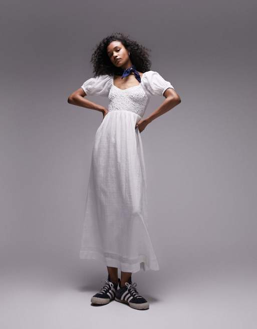Topshop – Elfenbensvit maxiklänning med textur på bysten