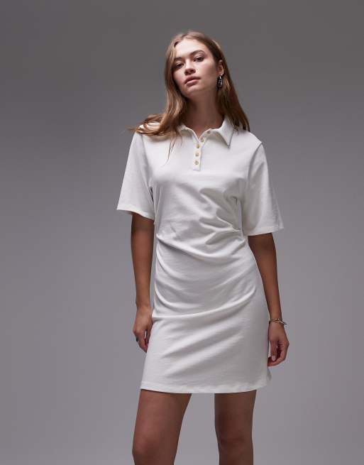 Topshop – Elfenbensvit pikéklänning i minilängd med markerad midja