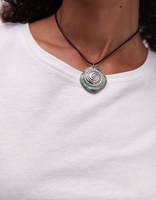 Topshop – Felix – Rephalsband med silverfärgat och turkost, texturerat hänge