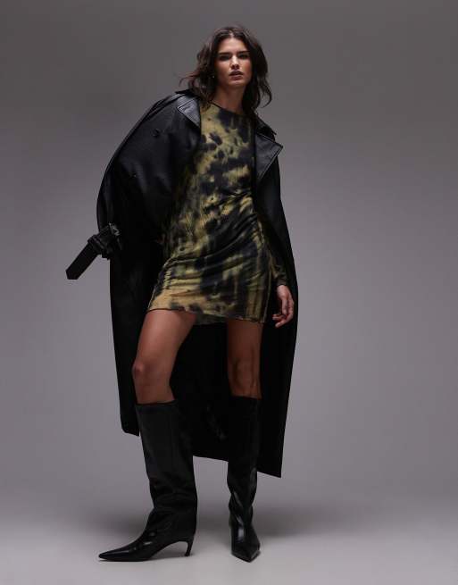 Topshop – Fläckmönstrad, krinklad miniklänning