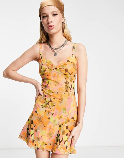 Topshop – Flerfärgad kort jerseyklänning med snurrad knut framtill och stora blommor
