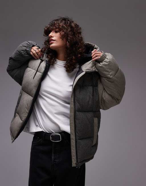Topshop – Flerfärgad, rutig pufferkappa i nylon