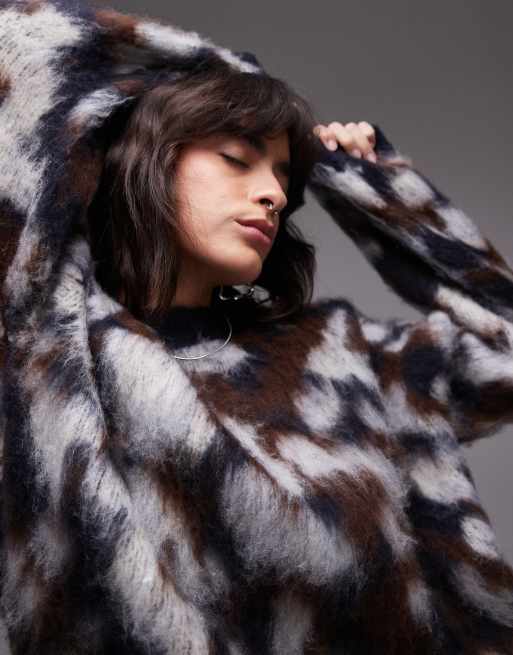 Topshop – Flerfärgad, stickad tröja med avslappnad, boxig passform och suddigt djurmönster