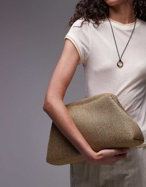 Topshop – Geela – Guldfärgad, vävd kuvertväska i oversize