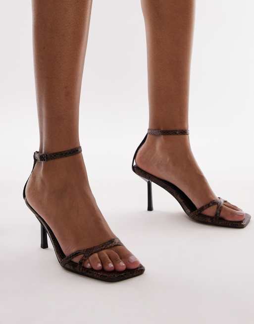Topshop – Gio – Ormskinnsmönstrade, höga klacksandaler med remmar