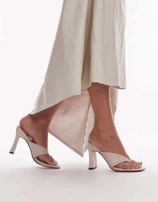 Topshop – Gisele – Naturvita mules med klackar, öppen häl och tårem