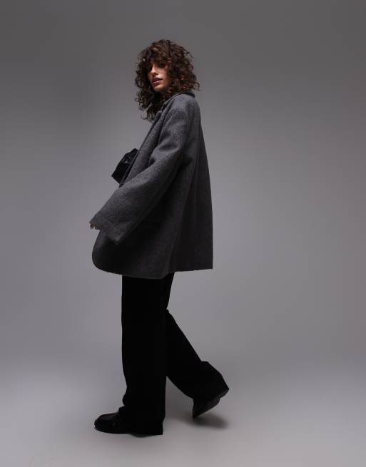 Topshop – Grå kappa i borstad yllemix med kavajdesign