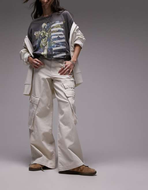Topshop – Gräddvita pösiga cargobyxor med sidofickor
