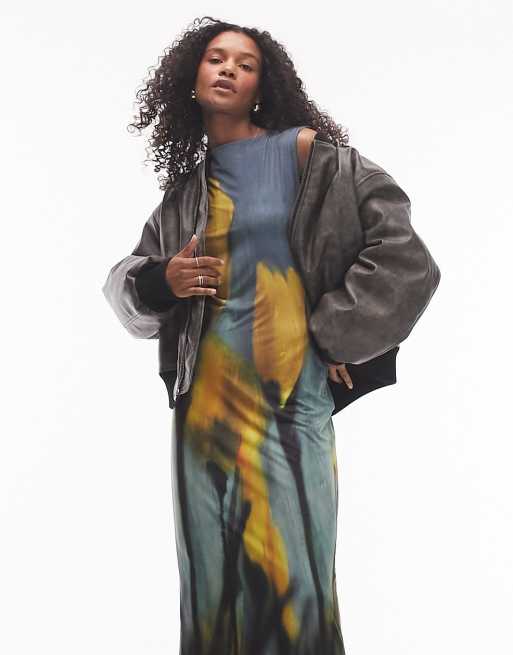 Topshop – Gul, tulpanblommig midiklänning i jersey
