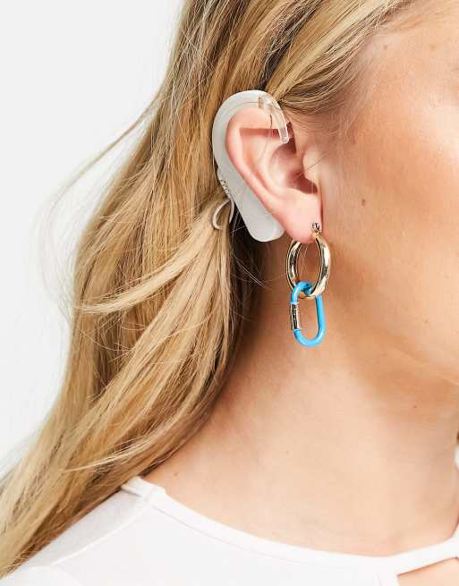 Topshop – Guldfärgade creoler med blå sammanlänkande hängen