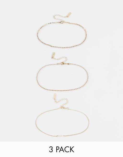 Topshop – Guldfärgade fotlänkar med pärlor, 3-pack