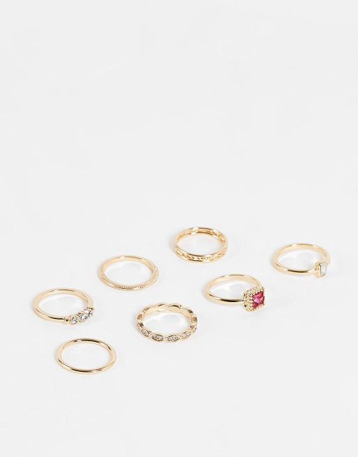 Topshop – Guldfärgade ringar med rosa kristall, 6-pack