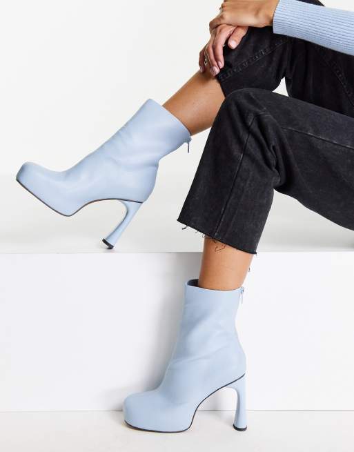 Topshop – Harri – Blå sockboots med hög platåklack
