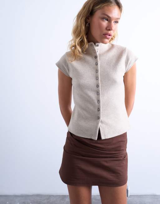 Topshop – Havrefärgad, tätstickad kostymväst med holkärmar