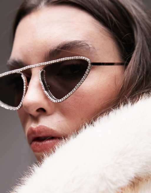 Topshop – Iris – Silverfärgade solglasögon i cateye-modell med strass