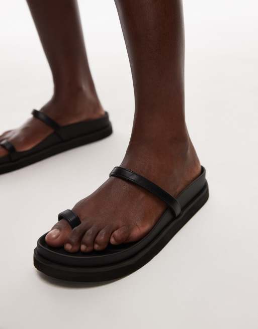 Topshop – Josh – Svarta, minimala, platta sandaler