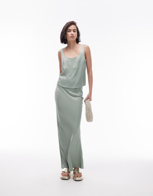 Topshop – Kakifärgat set med linne och kjol