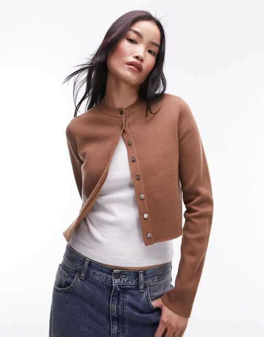 Topshop – Kamelbrun, finstickad kofta