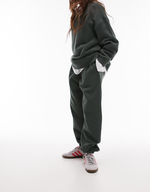 Topshop – Khakifärgade mjukisbyxor i oversize med muddar