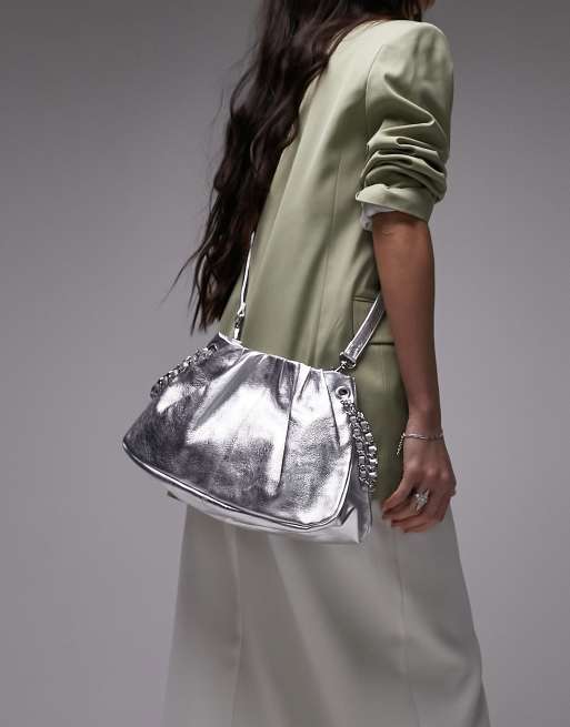Topshop – Lea – Silvrig axelremsväska i läder