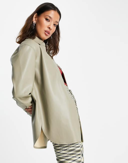 Topshop – Lerfärgad skjortjacka i läderimitation och oversize