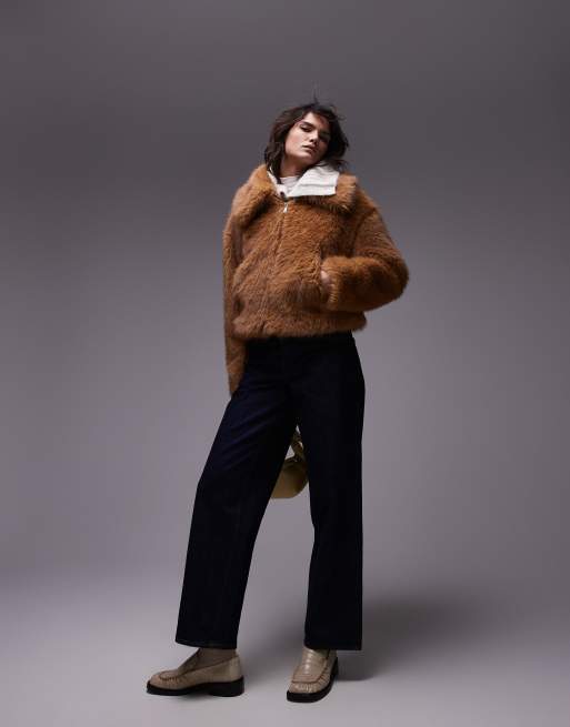 Topshop – Ljusbrun, kort bomberjacka i fuskpäls