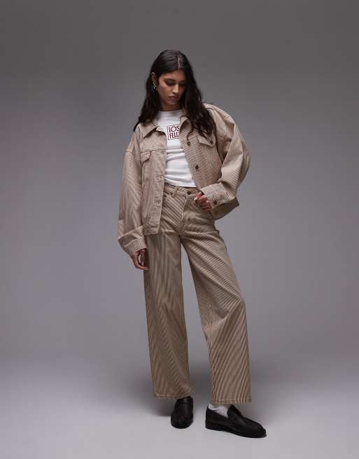 Topshop – Ljusbruna, randiga jeans med låg midja, avslappnad passform och indragen detalj