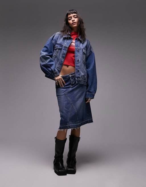 Topshop – Mellanblå jeansjacka med ballongärmar