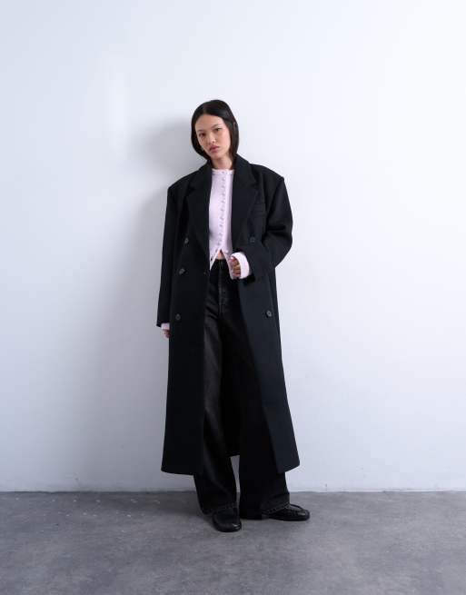 Topshop – Mensy – Svart, dubbelknäppt ytterrock i ylletyg